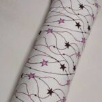 • Білий фон із рожевими та фіолетовими зірками та плюш шарпей світло-сірий.